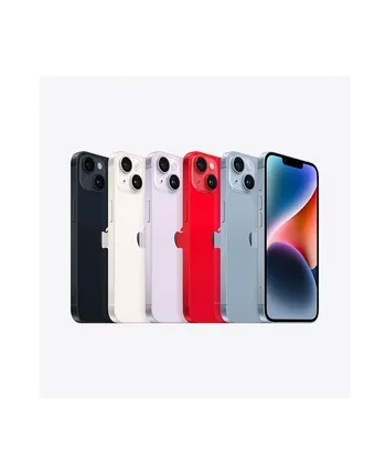 iPhone 14 Plus har et fladt design med en glasfront og -bag, forstærket med en aluminiumsramme. Den er tilgængelig i en række farverige muligheder, herunder midnat, stjerneskær, blå, lilla og rød med lagringsmuligheder på 128, 256 og 512 GB.